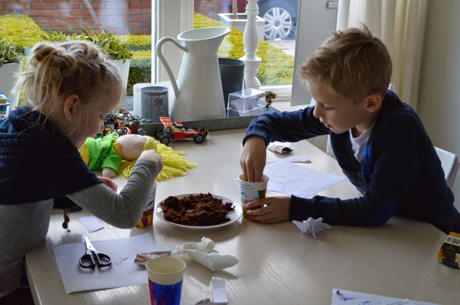 ‘He?’, ‘dat snap ik niet,’ zei een van de kinderen. We hebben geprobeerd uit te leggen dat zo’n klein zaadje eigenlijk sterft, zodat het plantje kan gaan groeien. Een van de net opgekomen plantjes had het zaadje nog ‘op z’n kopje’ , dus we konden het zo mooi zien! De link naar de Heere Jezus konden we heel mooi maken. Hij kwam om te sterven, zodat wij voor eeuwig kunnen leven! We keken nog een heel kort filmpje over hoe een zaadje een plantje wordt. Nog wel lastig voor de kinderen, maar als het beweegt is het leuk, zéker met het gezinsmoment ;). Daarna mochten de kinderen een bekertje versieren, er de tekst uit Johannes opplakken en er zonnebloemen in zaaien. Dat vonden ze erg leuk. Voor de wikkel gebruikte ik deze site. De tekst heb ik in Word uitgeprint, waarbij ik van deze site nog een plaatje haalde.