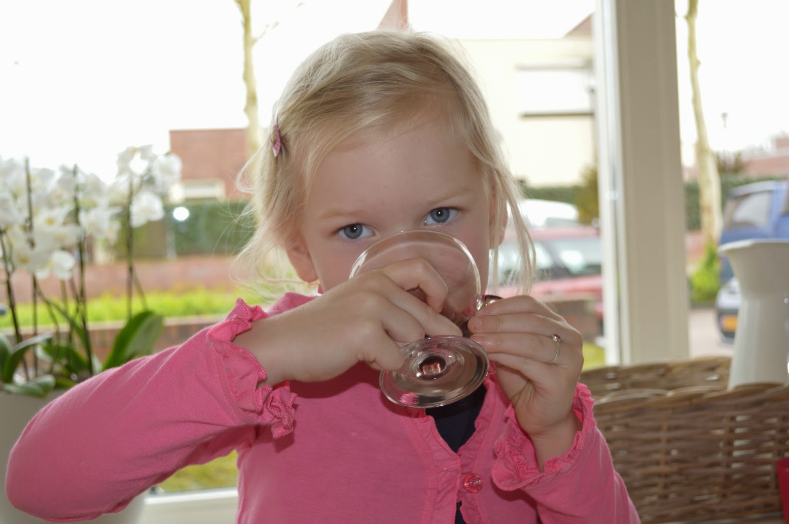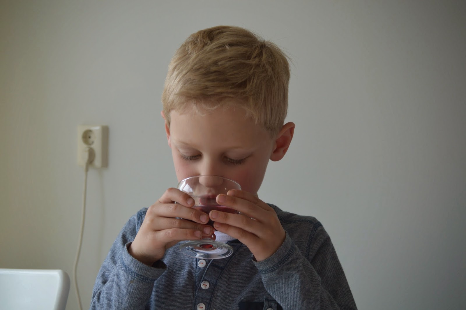 Dit deed ik ook met de ‘wijn’. Ik gaf het glaasje door, terwijl ik verder vertelde over de Heere Jezus, hoe Hij de beker pakte en gaf aan de discipelen met de woorden: “Dit is Mijn bloed, denk hieraan wanneer jullie hieruit drinken.” {Dit staat niet letterlijk zo in de Bijbel, maar de letterlijke tekst vond ik voor de kinderen nog wat moeilijk.} De kinderen waren zeker onder de indruk dat we dit met elkaar deden. We hebben hierna nog kort met elkaar gepraat over het Heilig Avondmaal. Ik had verwacht dat de oudste wel vragen zou hebben over waarom hij daar bijv. nooit aan mee doet, maar dit was eigenlijk helemaal niet zo. Hij wilde het ook liever niet, omdat de wijn hem vies leek :-).